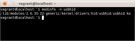 カーネルモジュールusbhidの情報をカーネルモジュールのファイル名のみ表示した。