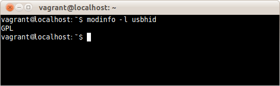 カーネルモジュールusbhidの情報をカーネルモジュールのライセンス形態のみ表示した。