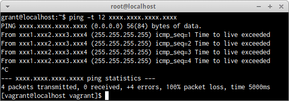 $ ping -t 13 xxxx.xxxx.xxxx.xxxx