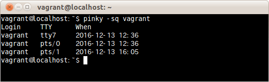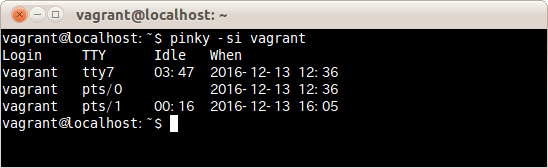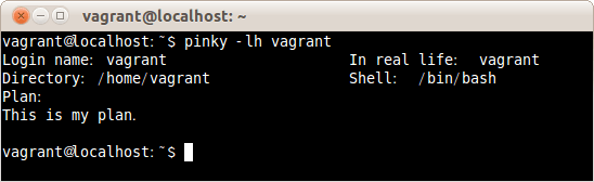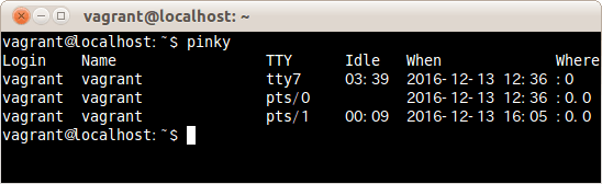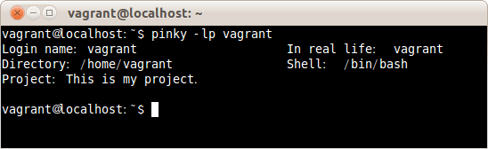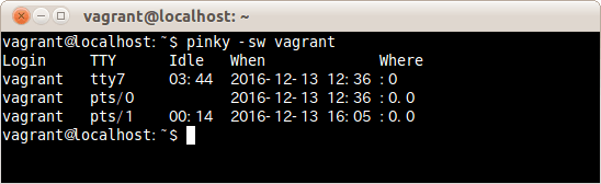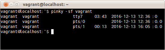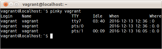 $ pinky -l vagrant