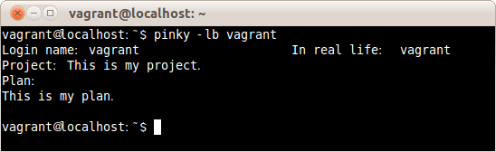 $ pinky -s vagrant