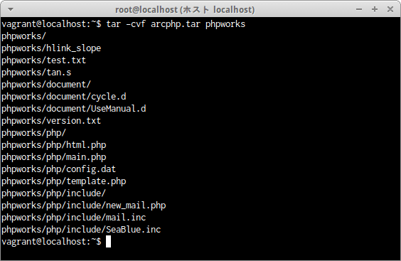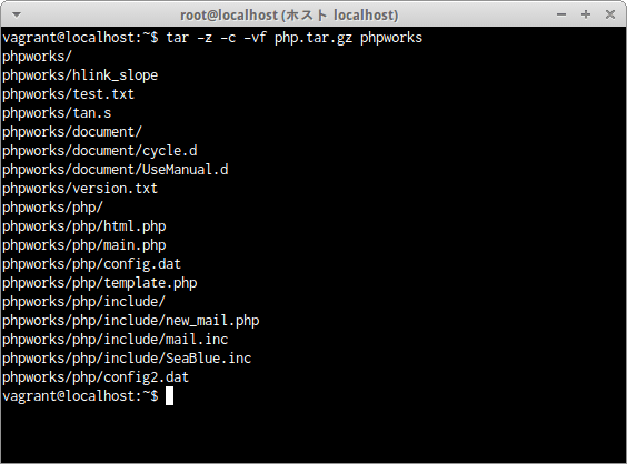 ディレクトリphpworks全体をgzip形式で圧縮されたアーカイブファイルphp.tar.gzとしてアーカイブするには次の通りだ。