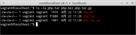 最後にtarコマンドに関連して、基本的なアーカイブや圧縮のコマンドも紹介しておく