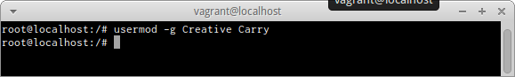 ユーザーCarryの主所属グループを「Creative」に変更する場合は、次のコマンドだ。
