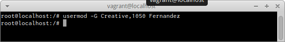 ユーザーFernandezの副所属グループに「Creative」とグループ番号(GID)が「1050」の2つに変更する場合は、次のコマンドだ。