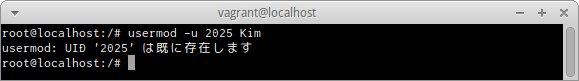 既存のユーザー番号(UID)と同じ番号にユーザーを変更する