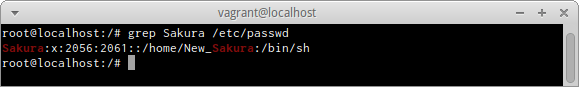 ユーザーSakuraの作業ディレクトリが、/home/New_Sakuraに変更されている。