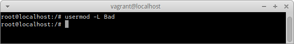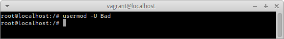 ユーザーBadのロックを解除するには次のコマンドだ。
