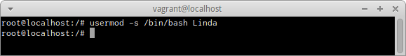 ユーザーLindaのログインシェルが「/bin/bash」に変更された。