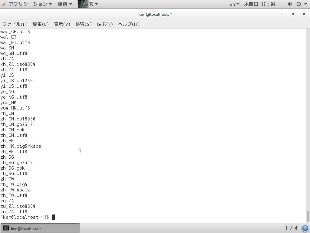 としてみよう、そしてその後localeコマンドを実行してみよう。