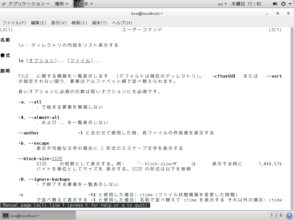 とすると、英語表記のlsコマンドのマニュアルが参照されるはずだ。