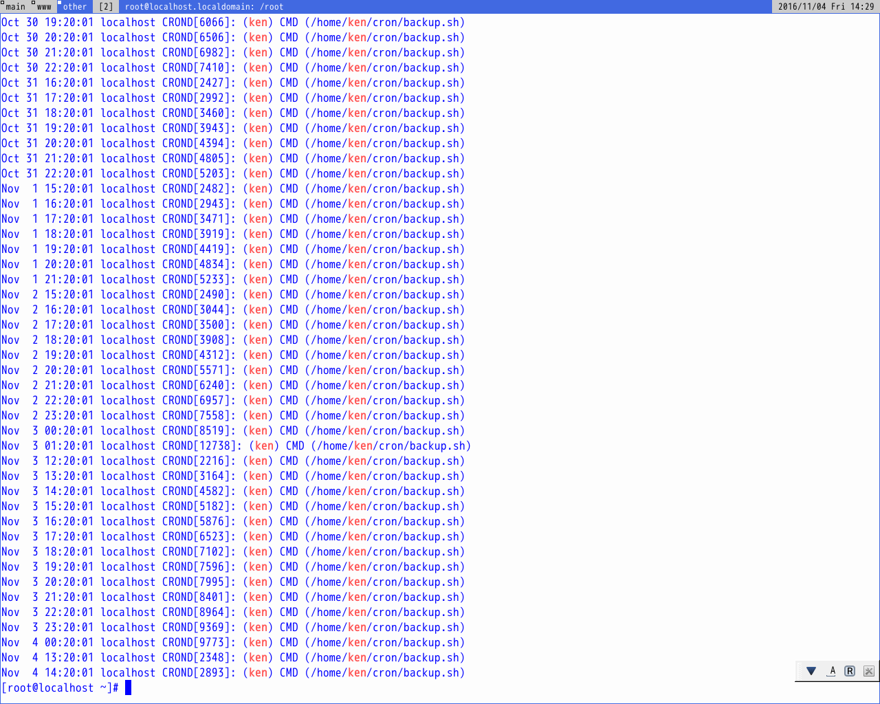 # grep ken /var/log/cron