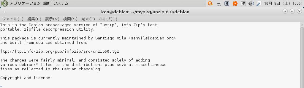 ダウンロードしてきたファイルと「debian」ディレクトリを確認してみる