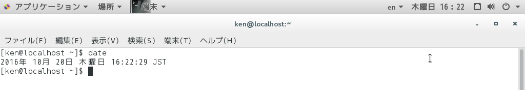 状態を確認するには「date」コマンドを叩く、日本の場合は「JST」と表示される。