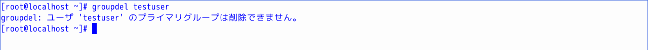 少々実験してみよう。まずはてっとりばやく「存在するユーザの主グループを削除してはならない。」を確認してみよう。