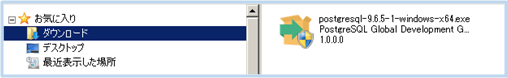 ダウンロードが終わると、ダウンロード・フォルダーに最新バージョンのインストーラー(OSに応じてpostgresql-9.6.5-1-windows-x64.exe)が格納される。この記事を書いている時点では、最新バージョンは9.6.5だ。