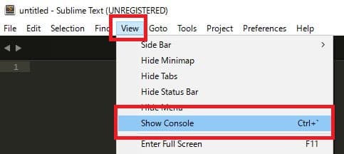 (2)SublimeTextのメニューから「View」→「Show Console」を選択する。