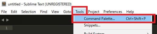 SublimeTextのメニューから「Tools」→「Command Palette」を選択する。