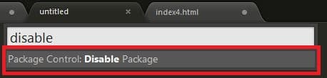 パッケージを無効化するにはコマンドパレットから「Package Control:Disable Packege」を実行して、無効にしたいパッケージを選択することで無効化できる。