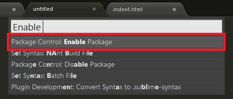 逆に有効にしたい場合は「Package Control:Enable Packege」を実行してパッケージを指定すると有効かできる。