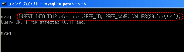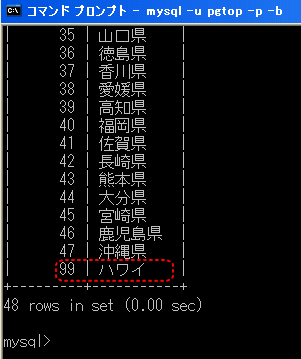 INSERT INTO T01Prefecture (PREF_CD, PREF_NAME) VALUES(99,'ハワイ');