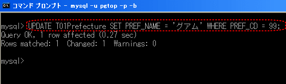 UPDATE T01Prefecture SET PREF_NAME = 'グアム' WHERE PREF_CD = 99;