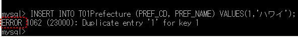 【11】既に存在する PREF_CD の番号を使って追加しようとすると、エラーが表示されます。