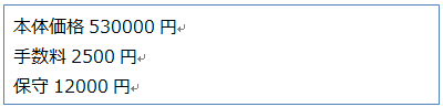 右揃えにしたい箇所(例で言えば金額)にTabを挿入する