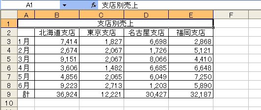たとえば、次のように2つの表を作ったとします。仮に「支店別売上」をSheet1に作り、「東京支店」をSheet2に作ったとしましょう。