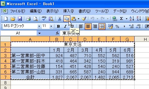まず、Sheet2の「東京支店」をコピーします。