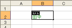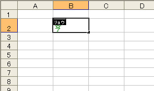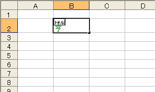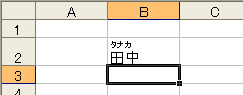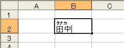 セルB2の「田中」は他のソフトから貼り付けたのでふりがなが設定されていません。