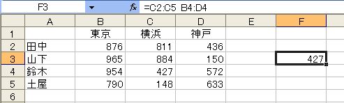 このように複数のセル範囲が交差するセルを参照するときは、セル範囲とセル範囲を