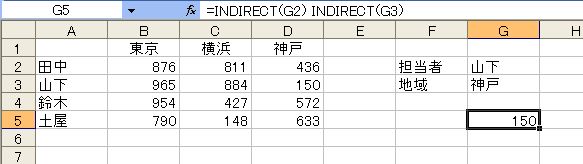 この関数はこう使え!「INDIRECT関数」をご覧ください。セルG5には次の式を入力しました。