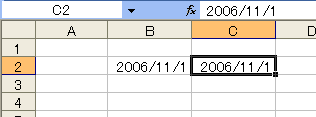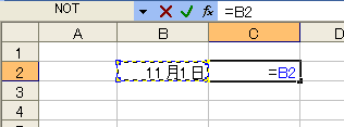 B列と同じ日付が入っていなければなりません。それには、B列のセルを