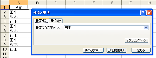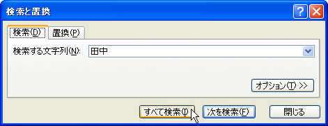 [検索と置換]ダイアログボックスで検索したい文字列を指定したら