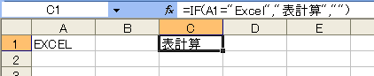 セルA1に入力されている文字列が「Excel」だったら"表計算"と表示し、そうでなかったら空欄を返したいときは次のようにします。