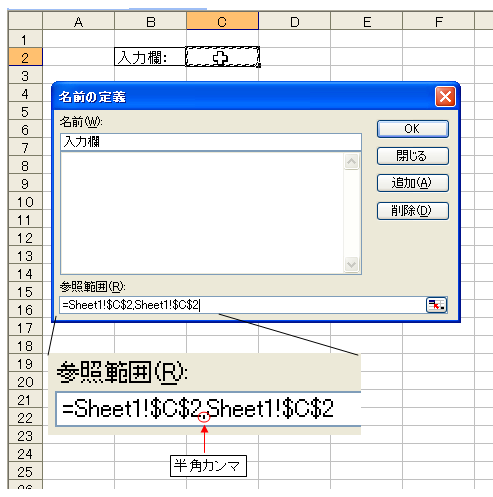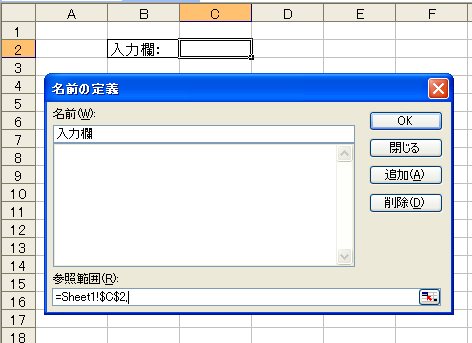 定義する名前は何でもいいです。ここでは、とりあえず「入力欄」としておきましょう。