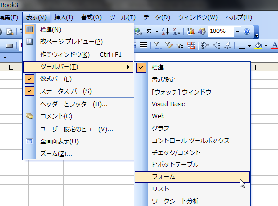 [表示]メニューの[ツールバー]をポイントして[フォーム]をクリックします。