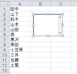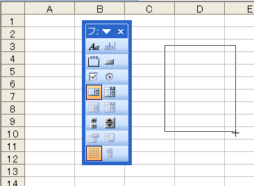 配置したいコントロールのボタンをクリックしてから、ワークシート上でドラッグします。