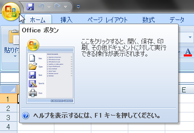 (1)[Office]ボタンをクリックします