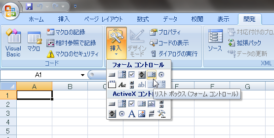 ワークシート上でリストボックスを使うには次のようにします。