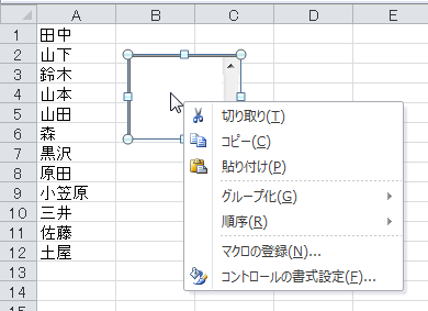 コントロールの配置 - Excel 2003まで -