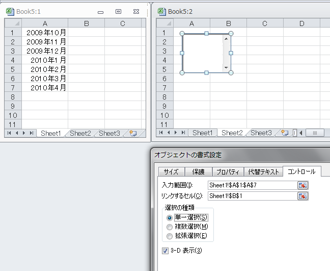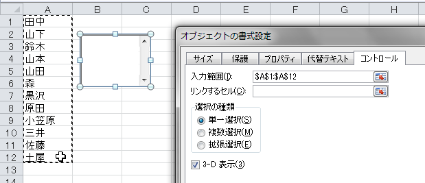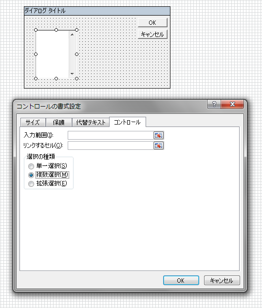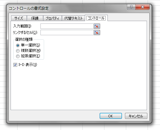 実行すると[コントロールの書式設定]ダイアログボックスが表示されます。