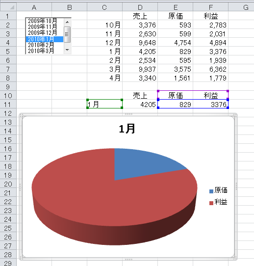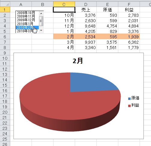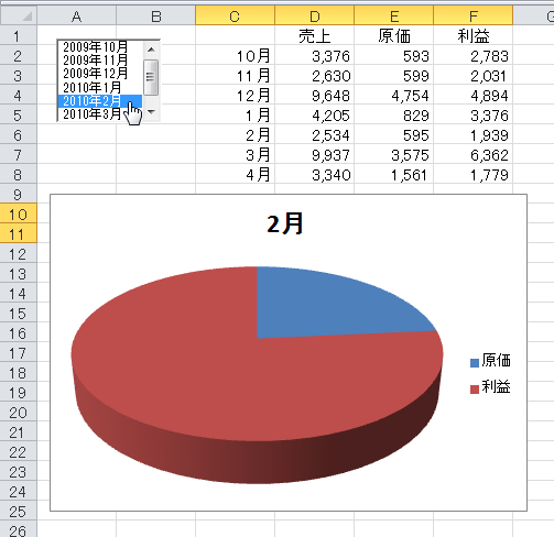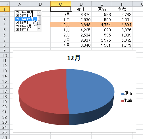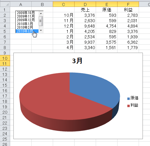 (8)リストボックスで選択すると、その月のグラフが表示されます