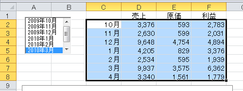 (11)これで、リストボックスで選択されたデータがわかりやすくなりました