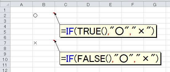 さて、ワークシート上の論理値をもう少し調べてみましょう。ワークシート上で論理値が登場する場面といえば、何と言ってもIF関数です。IF関数は、条件に指定した式がTUREかFALSEで動作が異なります。