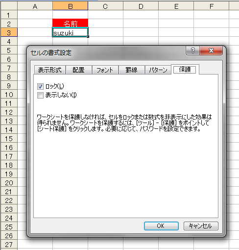 セルB3の[ロック]は、オンのままでいいです