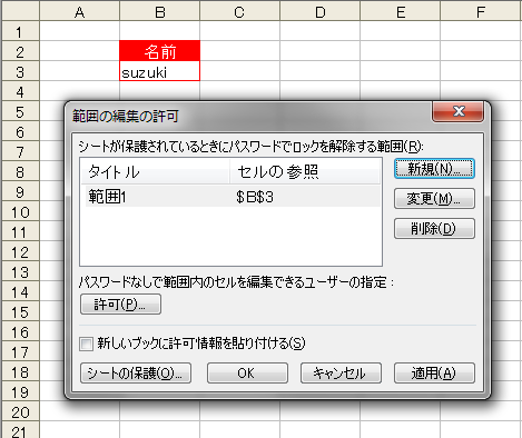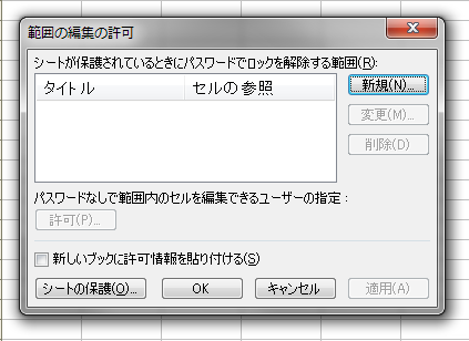 表示される[範囲の編集の許可]ダイアログボックスの[新規]ボタンをクリックします