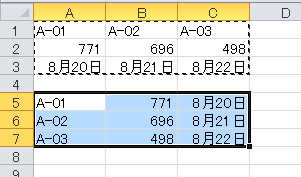 - 行列を入れ替えて貼り付けた表を選択してコピーします