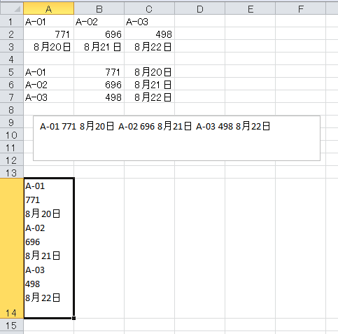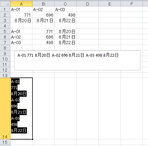 - 改行されたセルを編集状態にして、中の文字列をコピーします